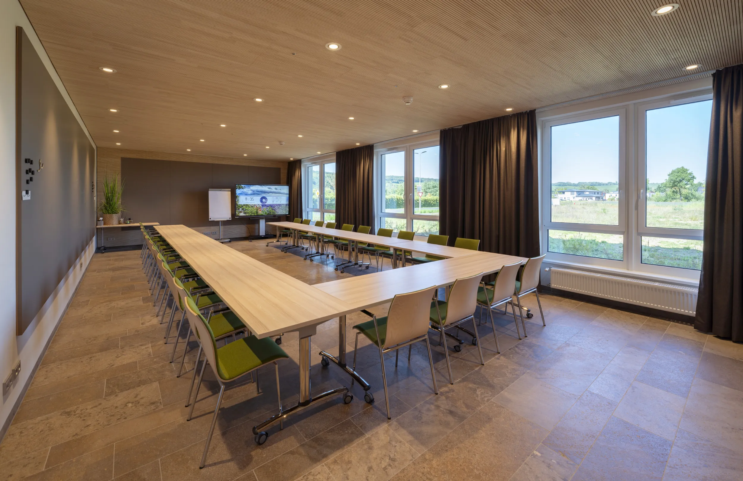 - Der große Seminarraum mit 77 qm empfiehlt sich für Veranstaltungen mit bis zu 26 Personen.